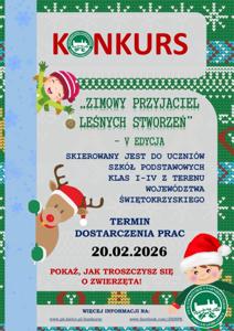 Zapraszamy do udziału w konkursie plastycznym ,,Zimowy Przyjaciel Leśnych Stworzeń". Zespół Świętokrzyskich i Nadnidziańskich Parków Krajobrazowych w Kielcach organizuje V już edycję konkursu plastycznego pn. „Zimowy Przyjaciel Leśnych Stworzeń”. Konkurs skierowany jest do uczniów klas...