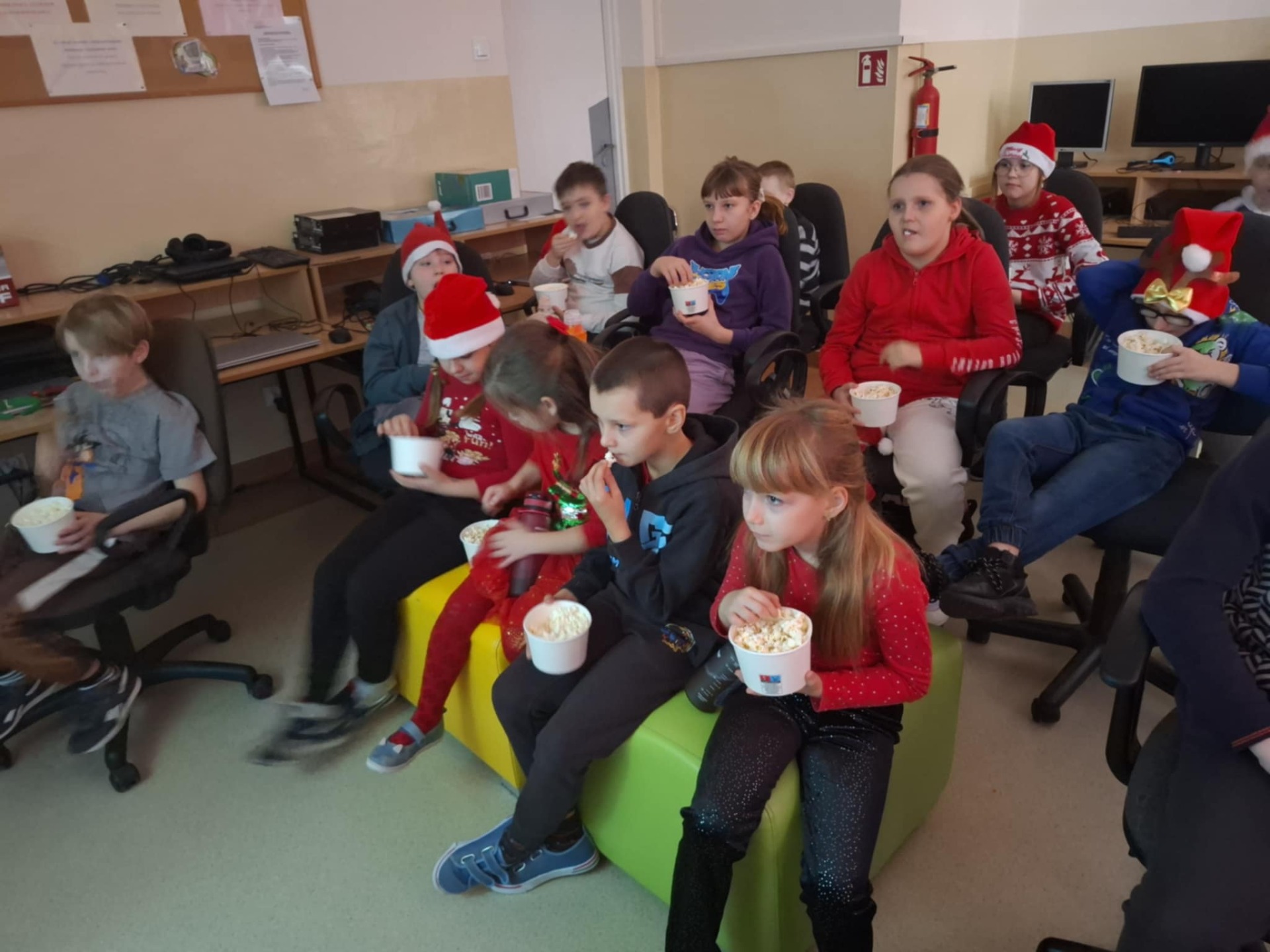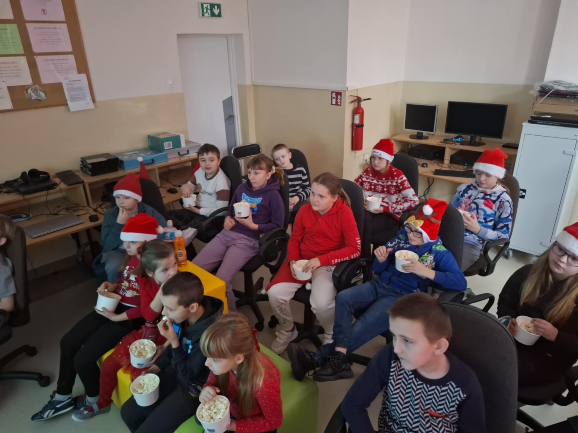 W naszej szkole z okazji Mikołajek odbył się wieczór filmowy. Uczniowie wspólnie oglądali film w miłej, świątecznej atmosferze. Nie zabrakło pysznego popcornu, śmiechu i dobrej zabawy. Był to świetny sposób na spędzenie czasu razem i poczucie mikołajkowego klimatu. 🎄🍿