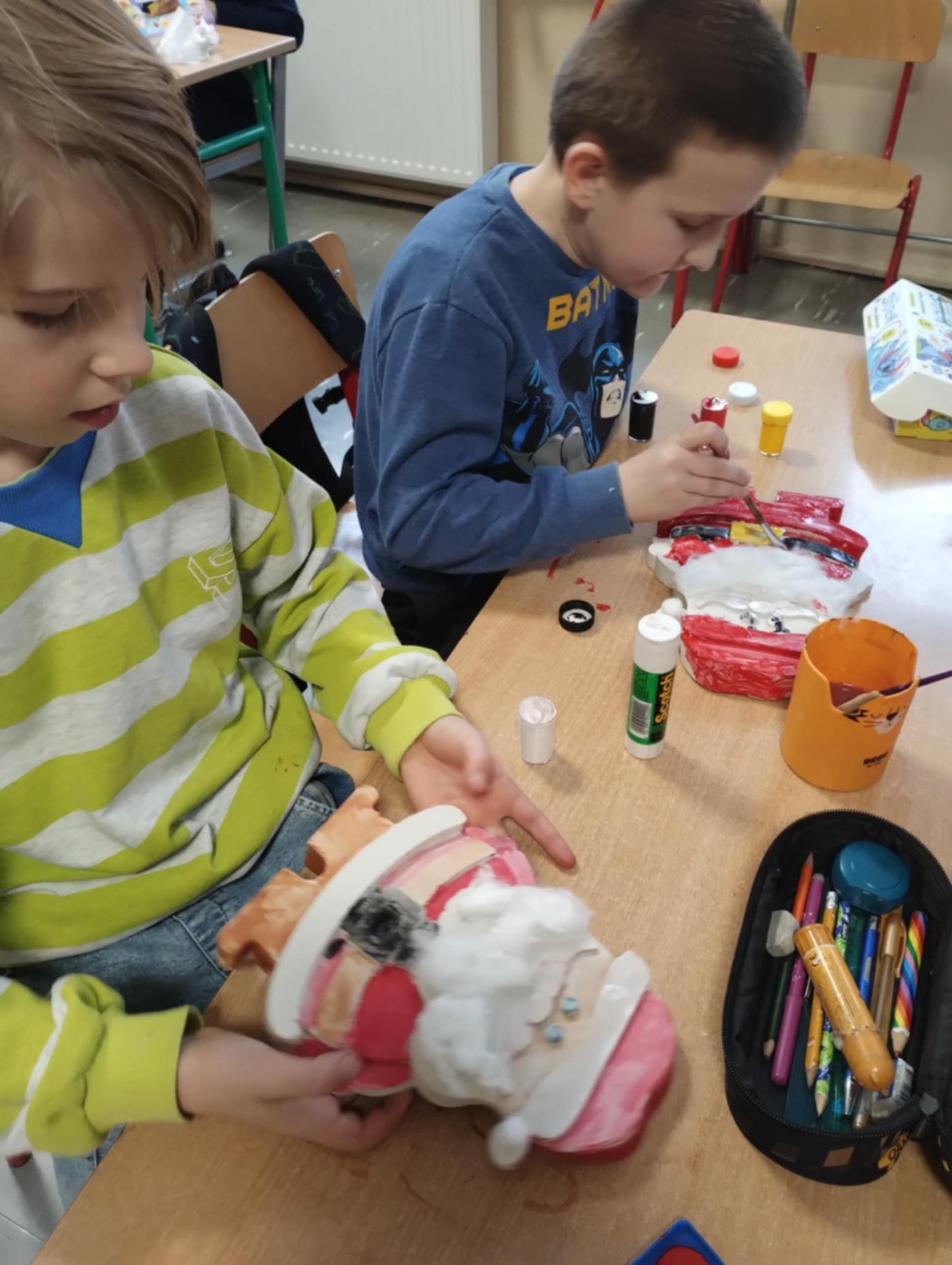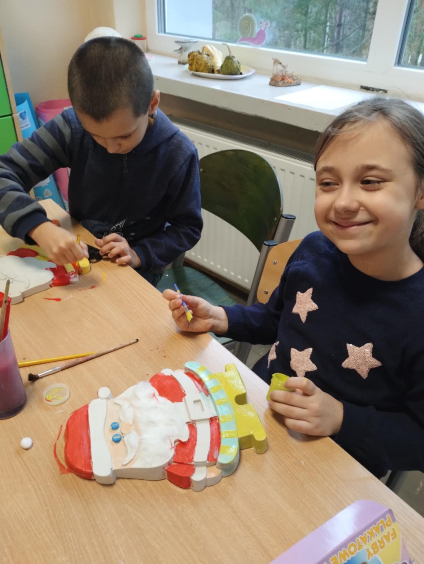 5 grudnia naszą szkołę odwiedził długo wyczekiwany gość – Święty Mikołaj. Z radością zajrzał do uczniów, którzy przez cały rok starali się być grzeczni i pomocni. Każde dziecko miało okazję porozmawiać z Mikołajem, odebrać drobny upominek oraz zrobić pamiątkowe zdjęcie. W klasach panowała świąteczna atmosfera pełna uśmiechów i wzruszeń. Tego dnia odbyły się również warsztaty plastyczne, podczas których dzieci z przedszkola i klas 1-3 malowały gipsowe figurki Mikołajów. Figurki te zostały przekazane przez panią Wiolettę Zychowicz-Jaworską, za co składamy jej serdeczne podziękowania. Dzięki jej życzliwości uczniowie mogli rozwijać swoją kreatywność i wprowadzić się w jeszcze bardziej świąteczny nastrój. To był wyjątkowy dzień pełen magii i radości, który na długo pozostanie w pamięci naszych uczniów. 🎄