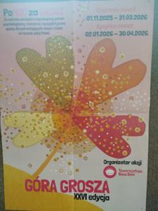 Co roku, na przełomie listopada i grudnia, w szkołach i przedszkolach odbywa się wielka zbiórka monet – Góra Grosza. Zebrane pieniądze przekazane będą na pomoc psychologiczną i rzeczową dla dzieci, które jej potrzebują i tych które nie wychowują się w swojej rodzinie.Wrzucając monetę...