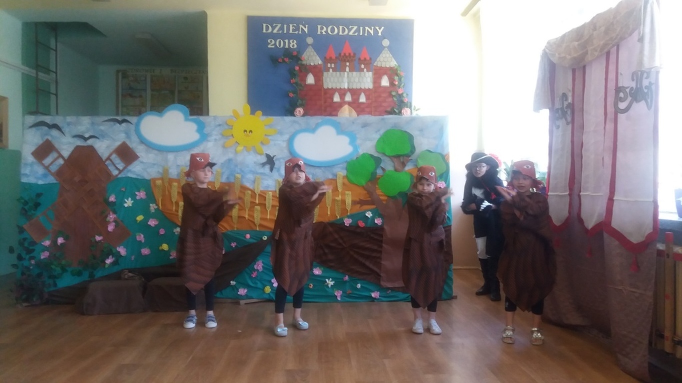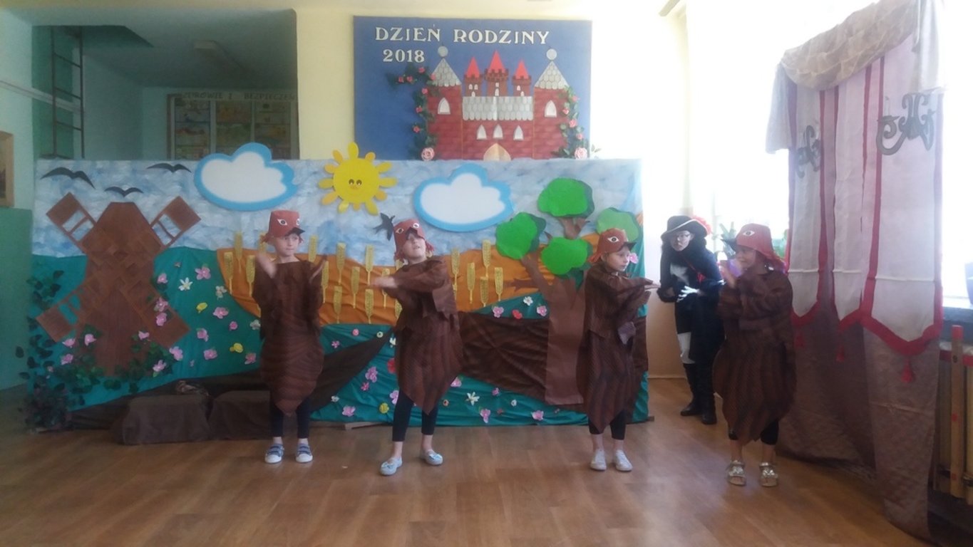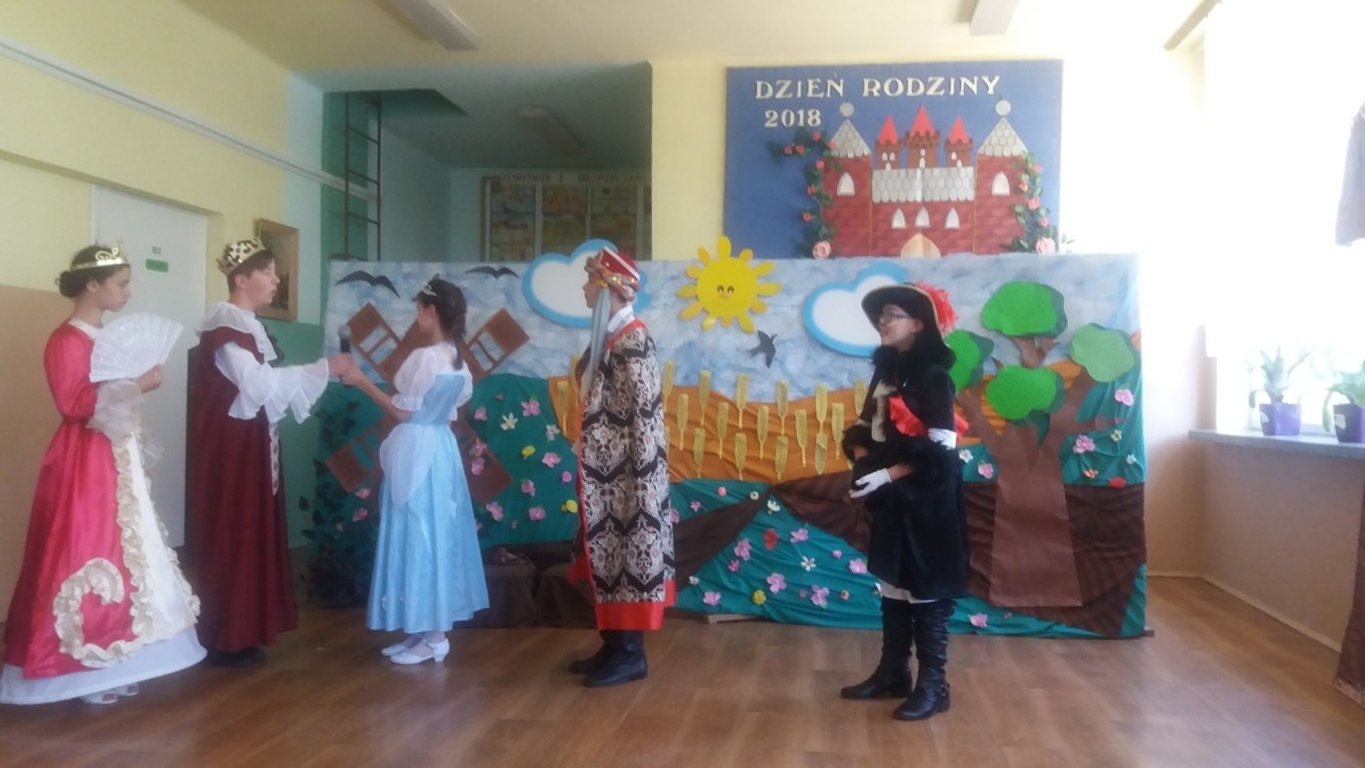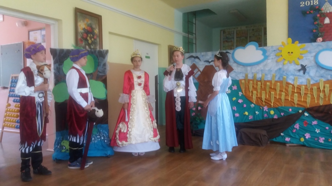 Następnie głos oddano artystom, którzy począwszy od najmłodszej grupy- dzieci 4-5 letnie, aż po uczniów klasy VII pełni zapału i zaangażowania deklamowali wierszyki, wyśpiewali z serca piosenki. Ponadto dzieci klas I-V wcieliły się w bajkowe postacie i zaprezentowali inscenizację bajki pt.: ,,Kot w butach”. Spektakl przeniósł widzów w krainę bajki. Jak każda bajka, ta także miała swój morał.