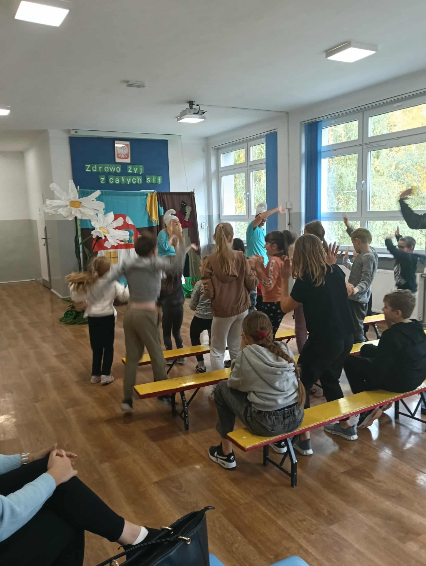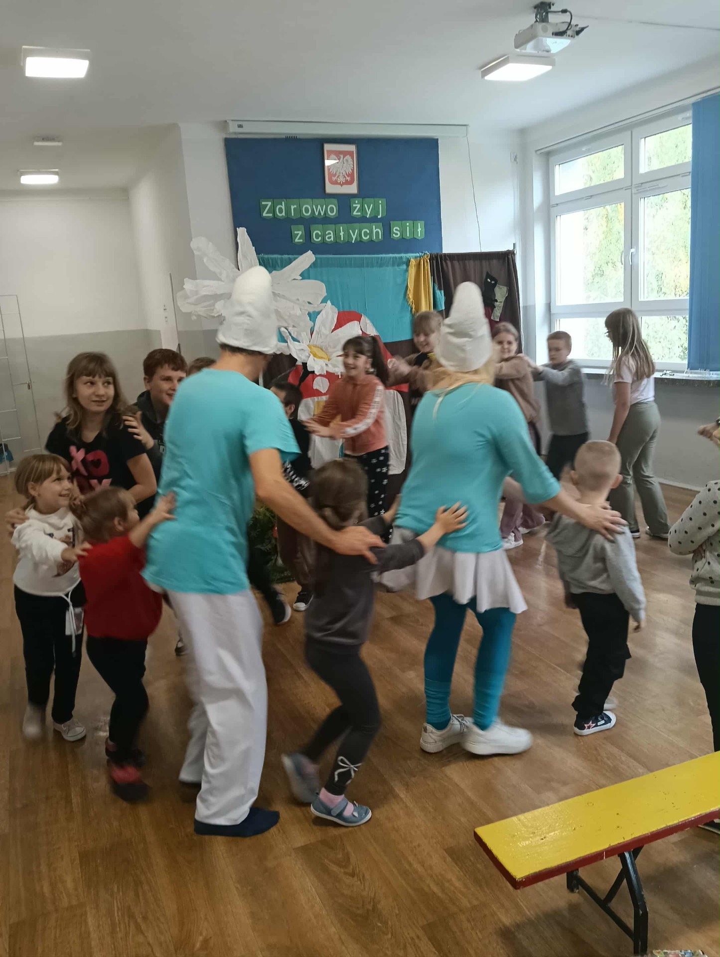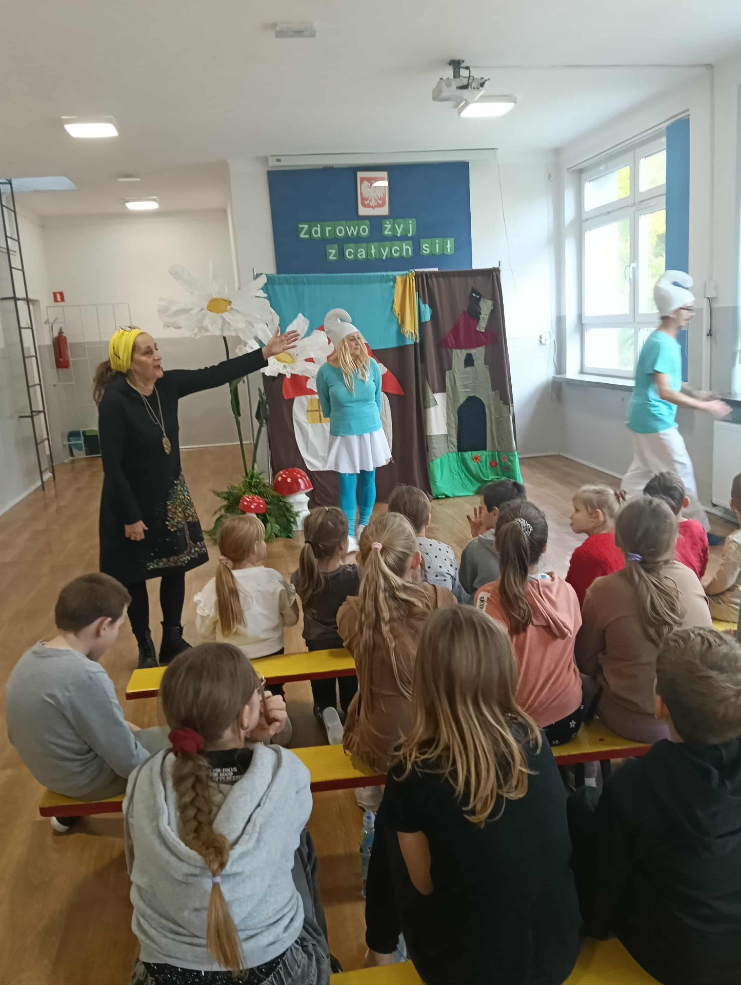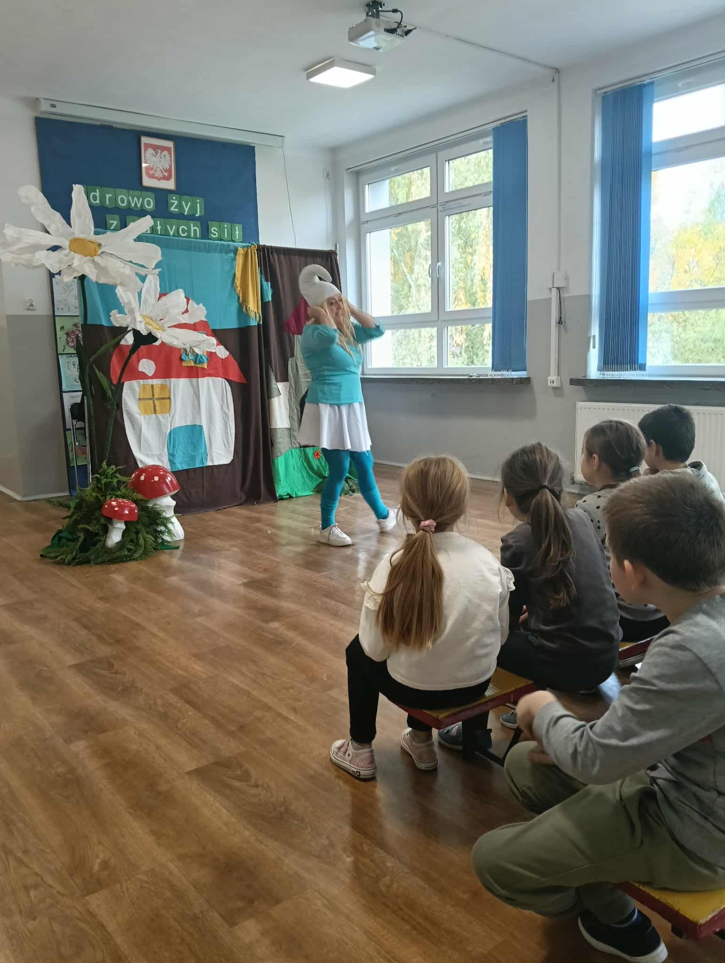 16.10.2025r. uczniowie klas 0-IV obejrzeli spektakl przygotowany przez Teatr z Kapelusza z Krakowa pt. „Smerfetka kontra Ważniak”. Przedstawienie miało charakter profilaktyczny i poruszało bardzo aktualny temat bezpieczeństwa w Internecie. Spektakl opowiadał o Smerfetce, która bardzo lubiła robić sobie zdjęcia i publikować je w sieci. Dziewczynka nie zdawała sobie sprawy z zagrożeń, jakie mogą z tego wynikać. Pewnego dnia w Internecie poznała chłopca o imieniu Krzyś, z którym zaczęła pisać. W rzeczywistości jednak za Krzysia podawał się Gargamel. Smerfetka, nieświadoma niebezpieczeństwa, zdradziła mu wiele informacji o sobie, a nawet podała swój adres. Gdy doszło do spotkania, okazało się, że Krzyś nie istnieje, a za ekranem ukrywał się ktoś zupełnie inny. Spektakl w ciekawy i przystępny sposób pokazał, jak łatwo można zostać oszukanym w Internecie. Aktorzy wykorzystali znane postacie ze świata Smerfów, aby w zabawny, ale pouczający sposób przekazać ważne treści. Całość była pełna humoru, piosenek i kolorowych scen, dzięki czemu spektakl bardzo podobał się uczniom. Przesłanie przedstawienia było bardzo ważne – nie wolno ufać nieznajomym w sieci, podawać swoich danych ani umawiać się z osobami poznanymi przez Internet. Dzięki temu spektaklowi uczniowie mogli lepiej zrozumieć, jakie zagrożenia mogą czyhać w wirtualnym świecie i jak się przed nimi chronić.