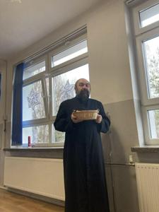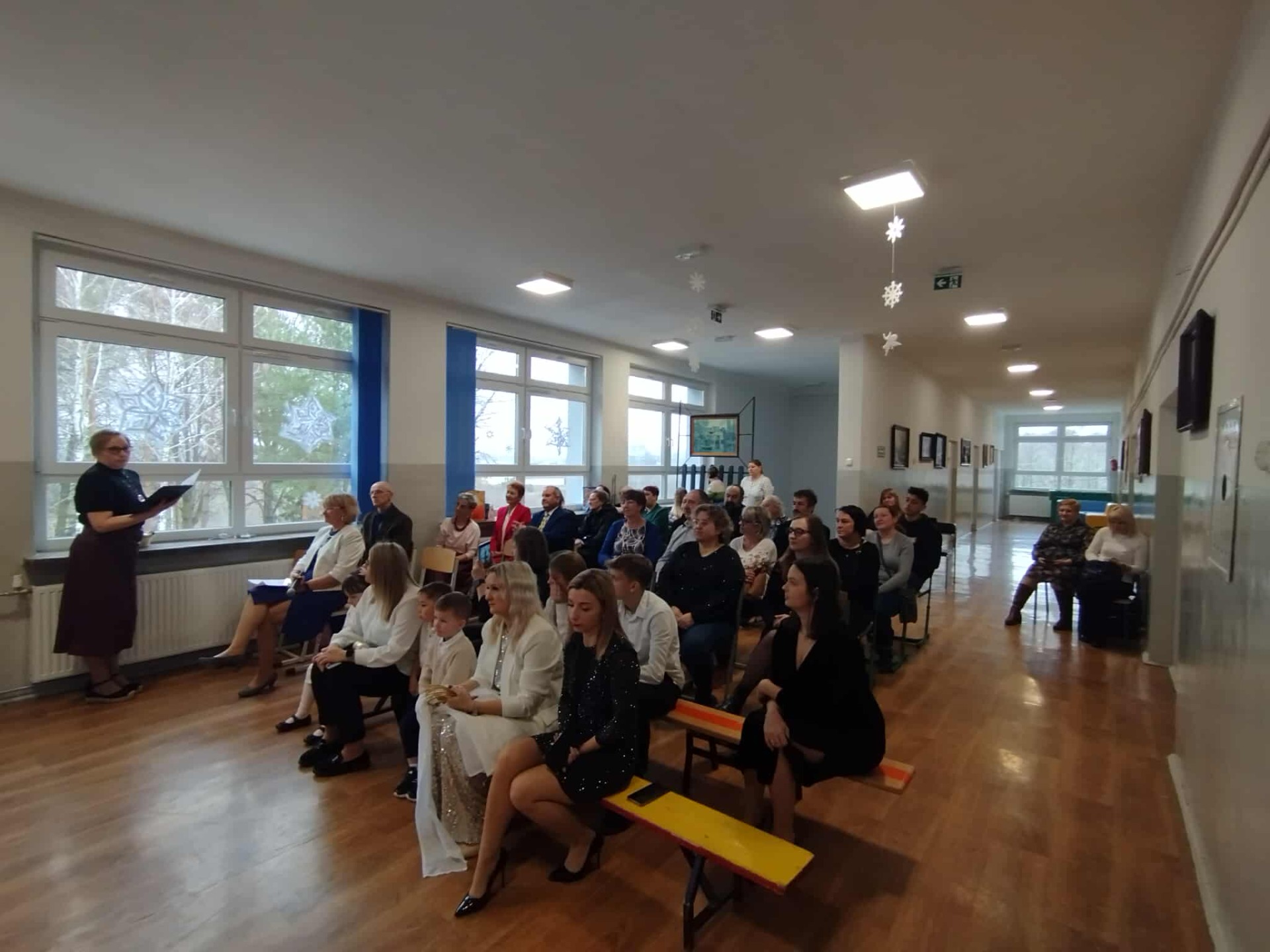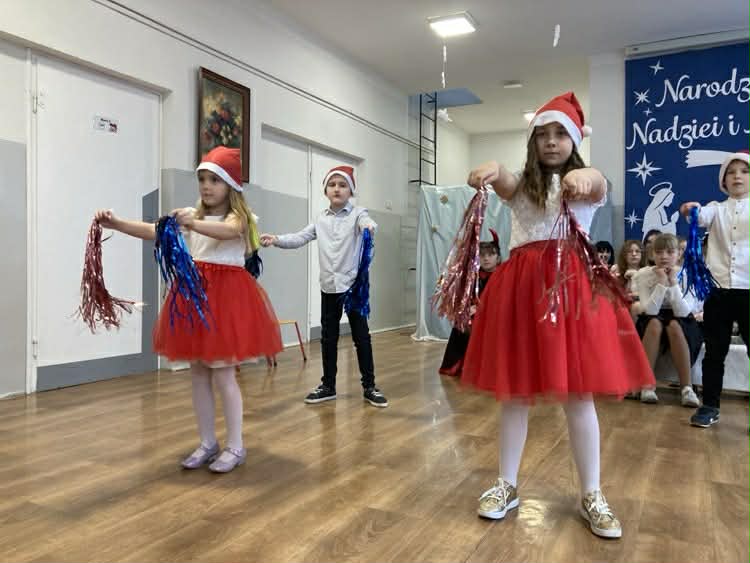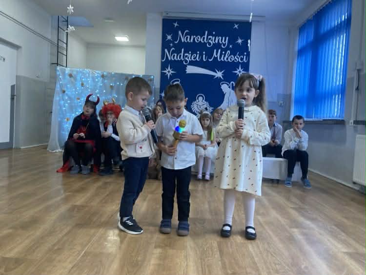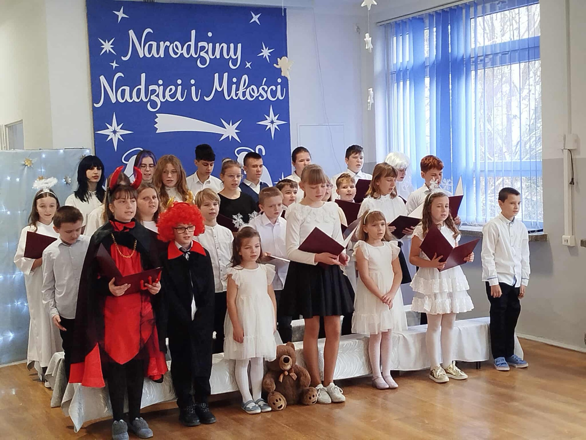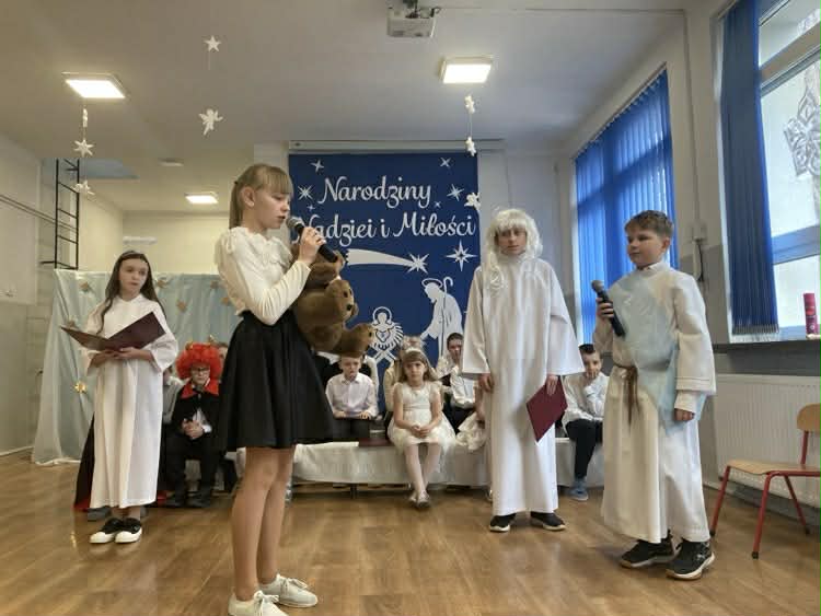 Na zakończenie głos zabrała Pani Dyrektor Edyta Gibała, dziękując uczniom i nauczycielom za zaangażowanie oraz trud włożony w przygotowanie przedstawienia. Następnie ksiądz Zbigniew Kargul skierował do wszystkich obecnych ciepłe słowa i świąteczne życzenia. Kulminacyjnym momentem było wspólne dzielenie się opłatkiem w gronie uczniów, nauczycieli, rodziców oraz zaproszonych gości. Tego samego dnia odbył się również kiermasz świąteczny, podczas którego można było zakupić stroiki bożonarodzeniowe przygotowane na tę okazję. Po zakończeniu jasełek cała społeczność szkolna udała się na wspólną wigilię szkolną, która stała się okazją do rozmów, integracji oraz przeżywania radości płynącej z nadchodzących Świąt Bożego Narodzenia.